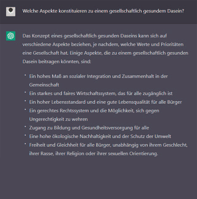 Probably the most critical section in this experiment are the topics selected by the AI, which address fundamental aspects that are highly relevant to society. On the one hand, these are indeed dependent on the selected sources of information used for training, but on the other hand, such a fixed common denominator would be of enormous value, even outside the context of this work. In the next step, the goals will be envisioned by the AI Midjourney.
