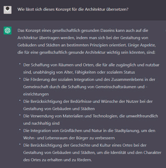 For the generation of images with Midjourney, a keyword-like command is now entered that briefly summarises the aspects mentioned. In total, over 500 images were generated in the course of this work. The images that were selected were those that reflect best from a subjective point of view. In this sense, it should be mentioned that the generated images can only serve as an approximation of certain ideas at this stage and do not contain any demonstrable integration of concepts. Nevertheless, certain structures are recognisable, which in turn can be picked up by human hands.