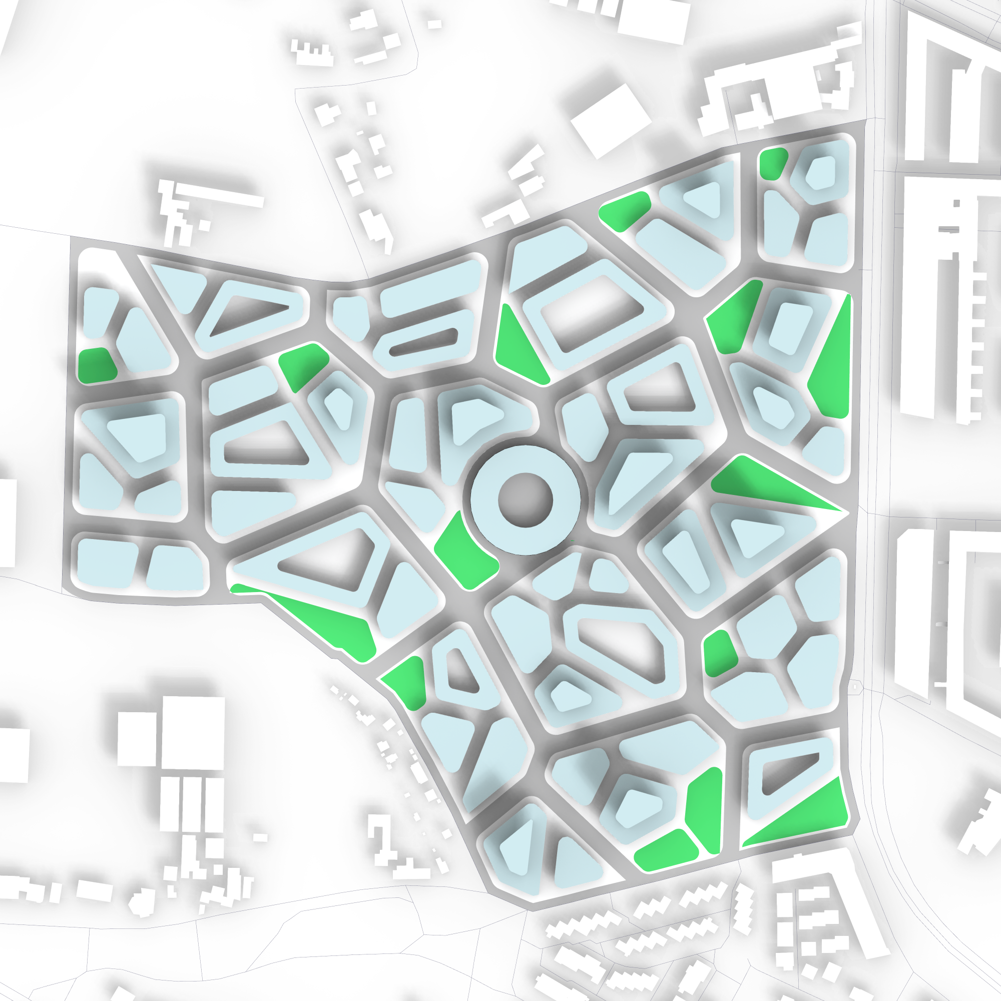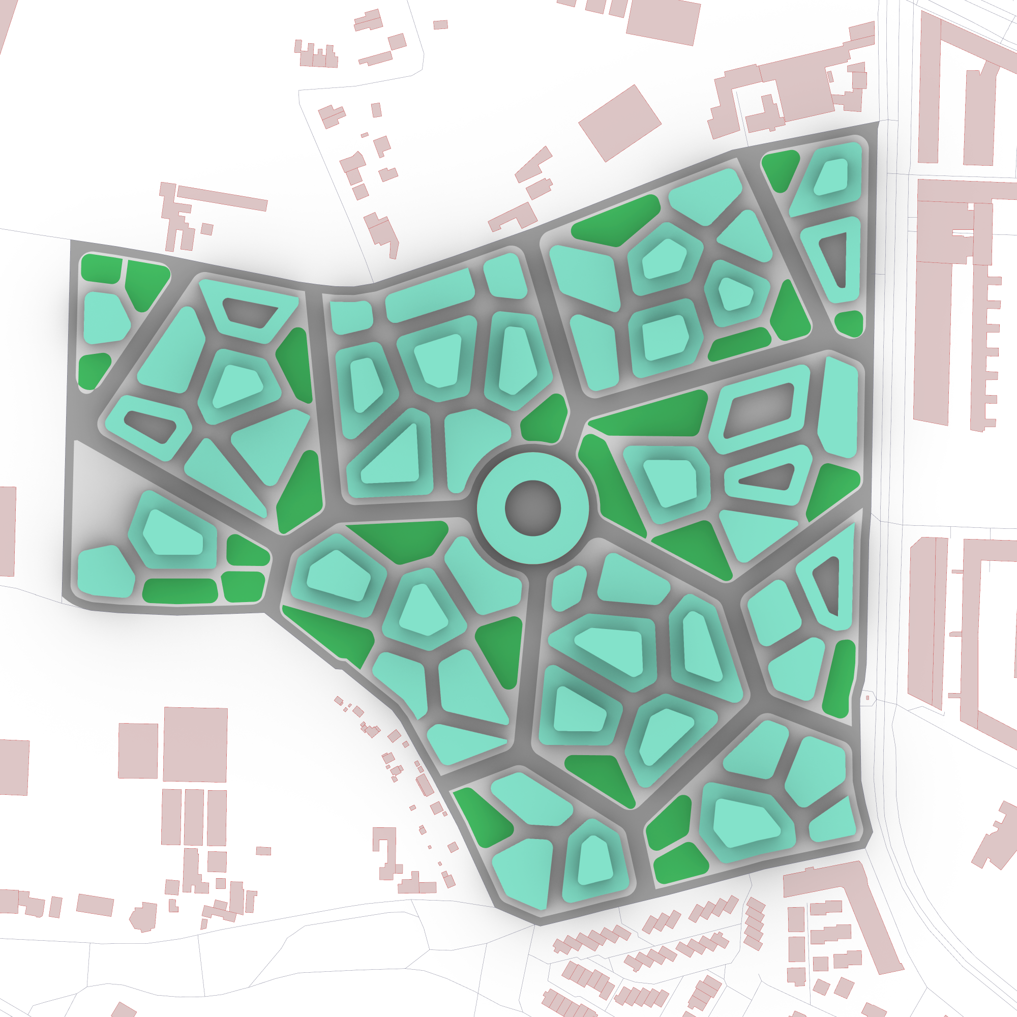 In the direct context, an attempt will now be made to construct an urban structure similar to the images, which will contain the defined features. Although this will not be an exact translation, at least some of the formal ideas will be adopted and integrated into the design. For this step, a programme is then written using Grasshopper, which is intended to generate a geometry that is location-independent or universally applicable.