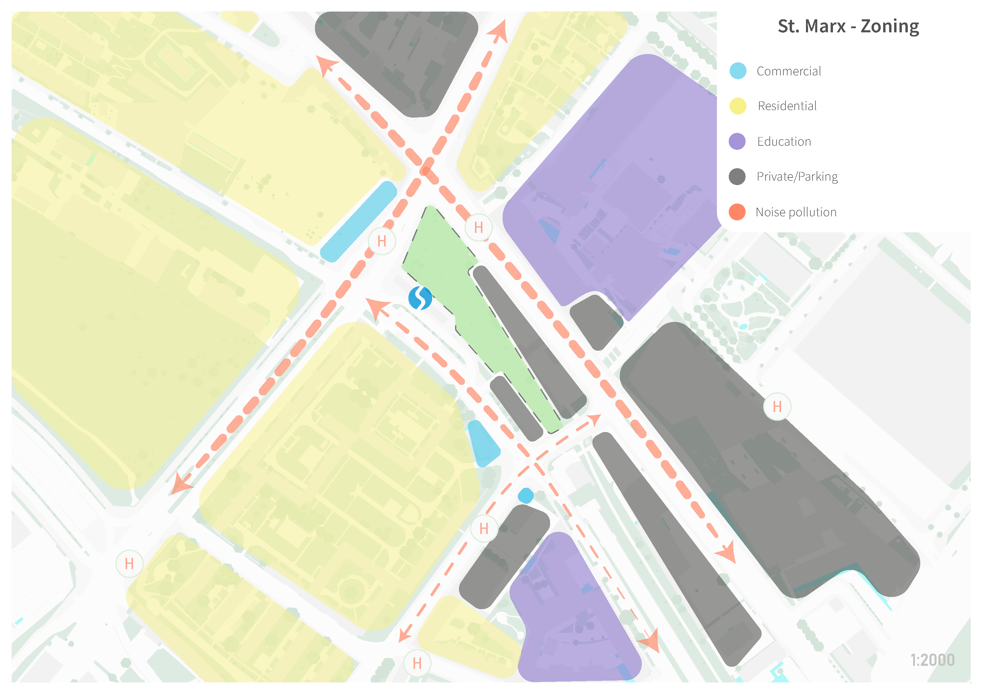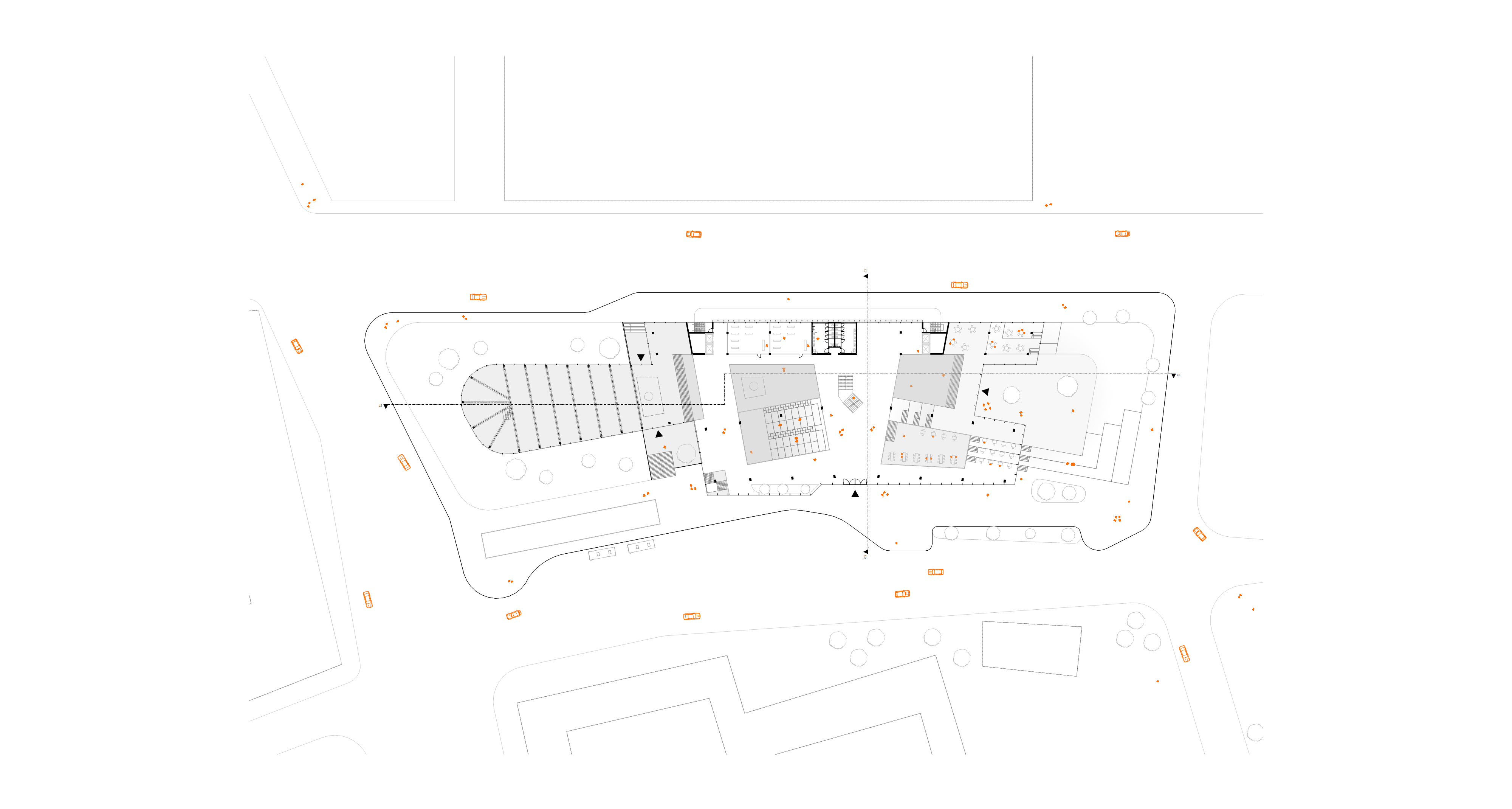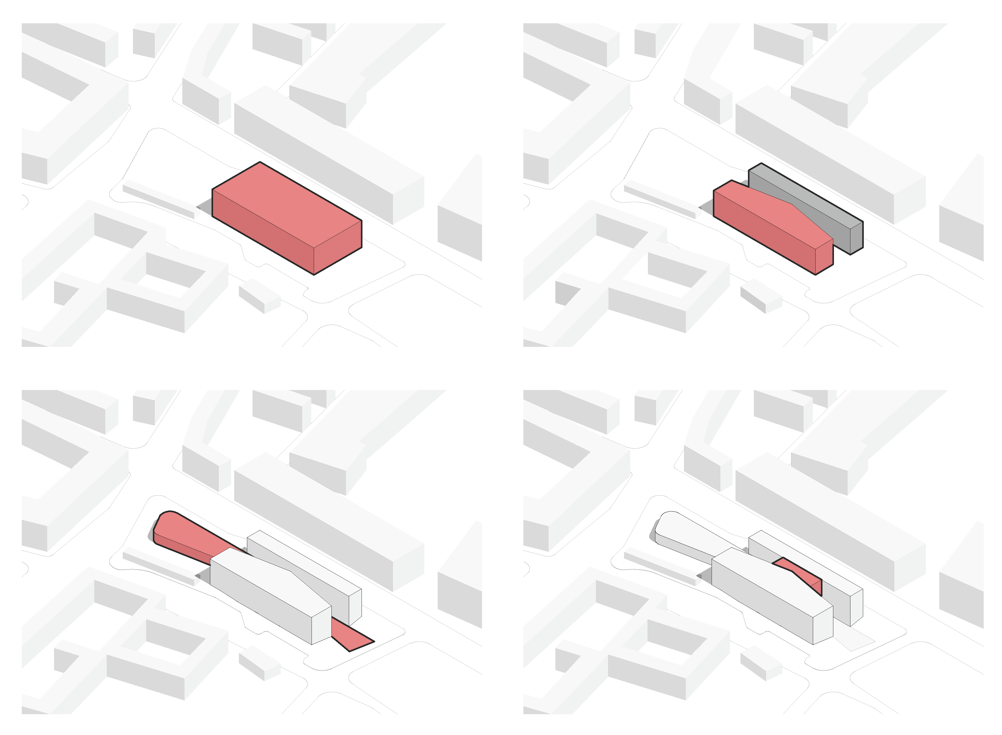 In terms of urban planning, it was a major goal to identify existing axes of movement, such as those provided by public transport or commuters, and to either support or supplement these. The result is a dissolved body that contains individual components that differ from one another in terms of use and construction, but have a unified effect as a whole.