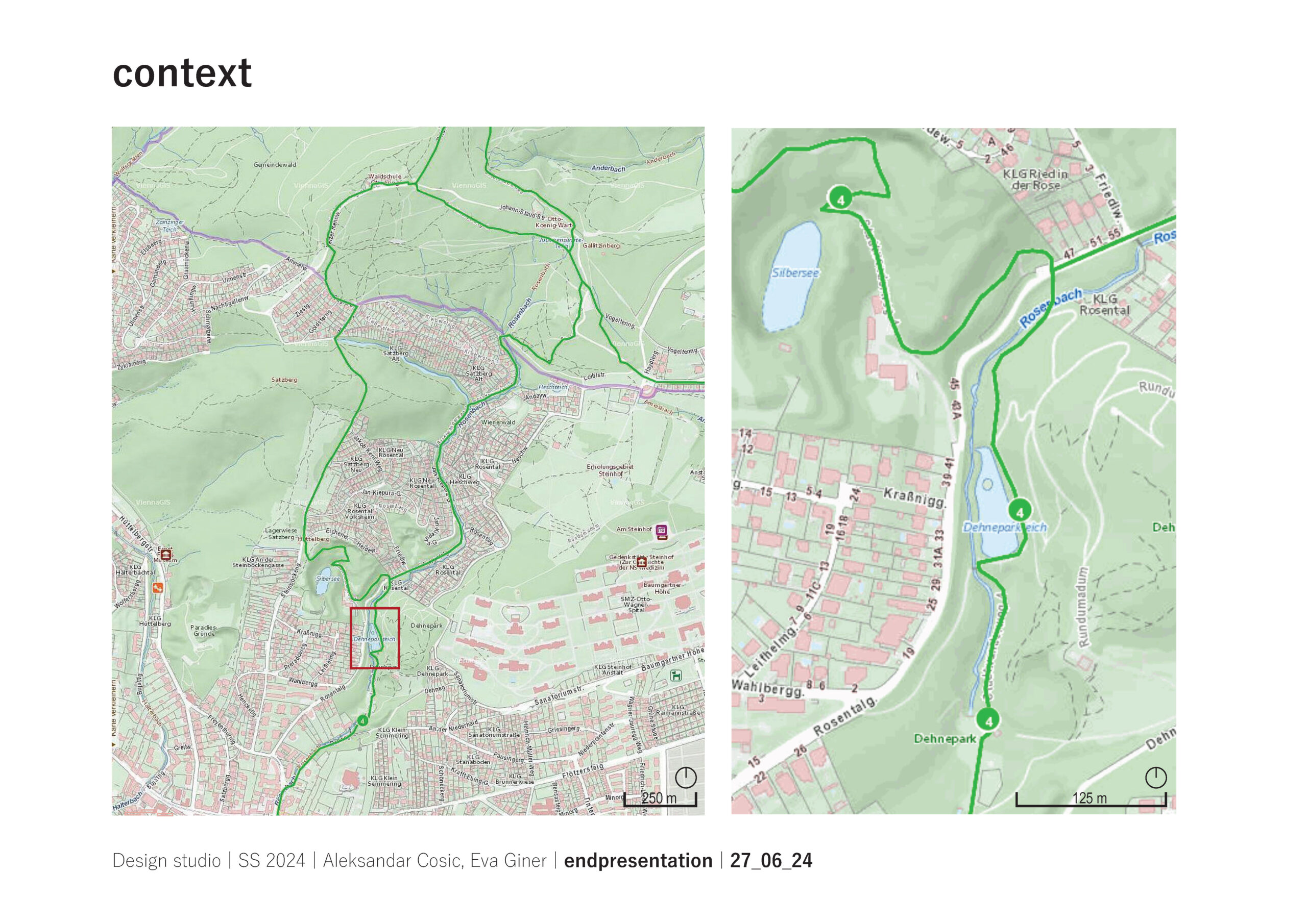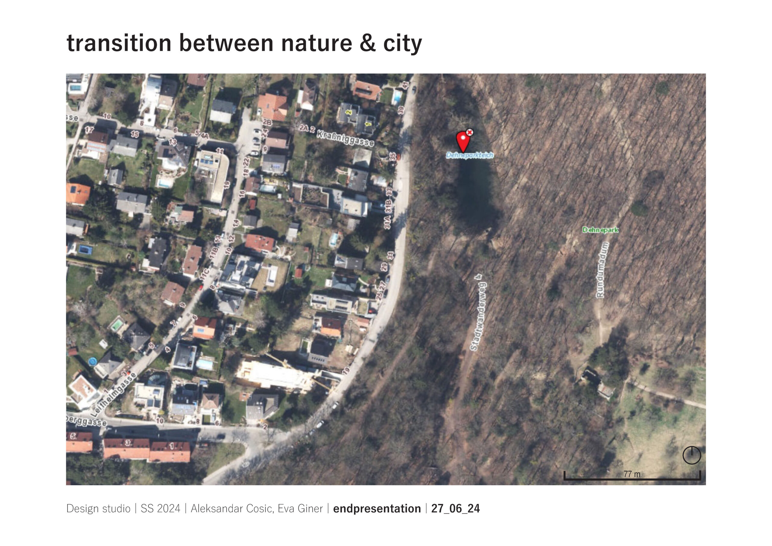 One thing we noticed quite early on, was the harsh cut between sub urban area and the forest area. In Austria, this is quite common because of the harsh regulations through the zoning plans (Flächenwidmungsplan). Dissolving the borders became one of our goals in this project among many others.
