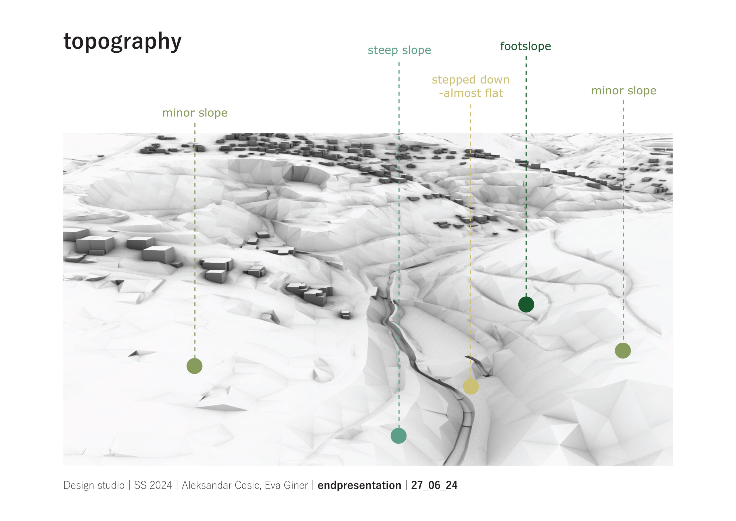 While researching on the topic of geodiversity, we learned how certain topological features play a role in the ecosystem as a whole. So, while further analyzing the site for these properties, we started to make the topography another key point to the design process.