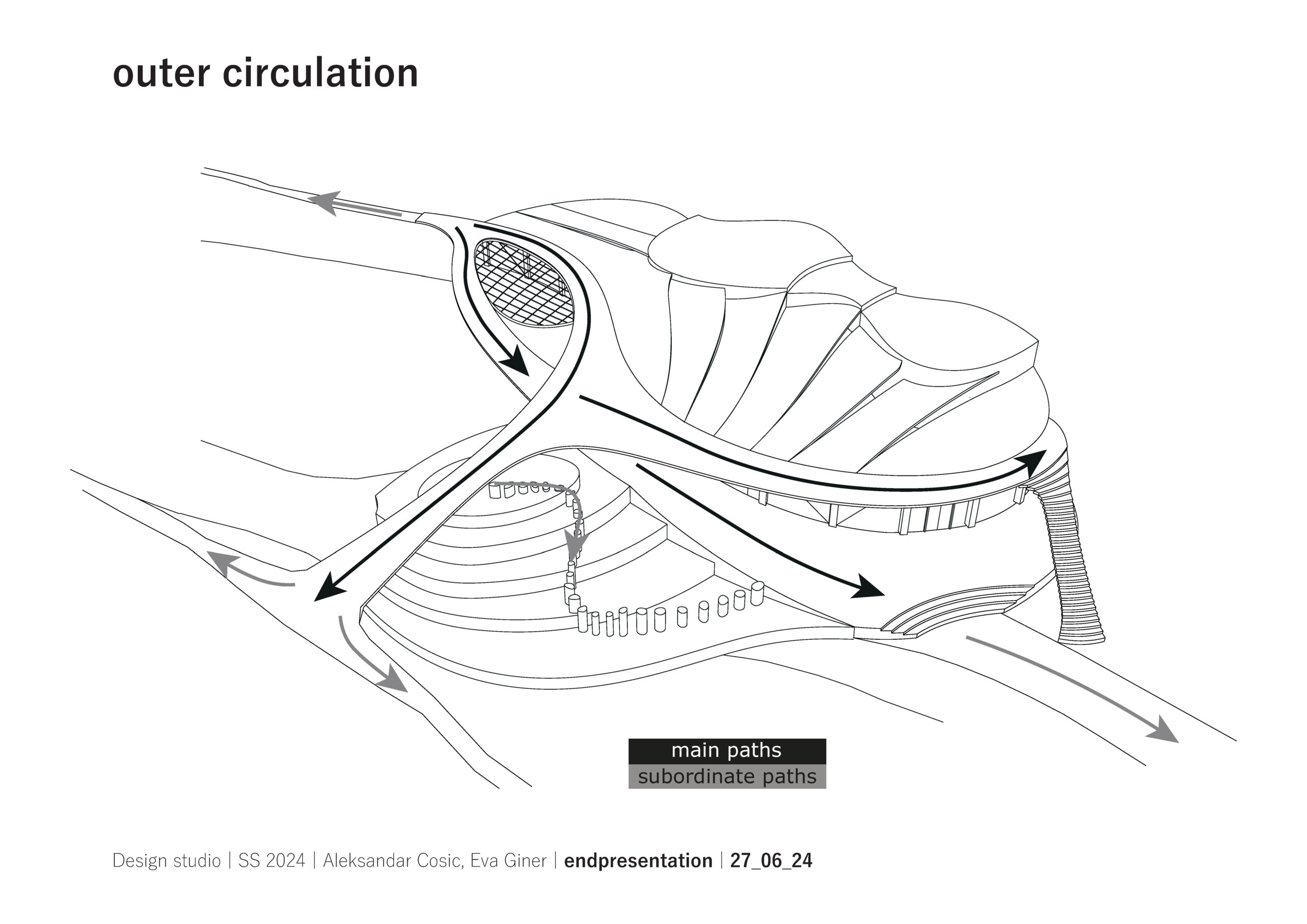 Taking a first glance at how the building is embedded into its surrounding, it becomes clear how the path became the main motive for its form.