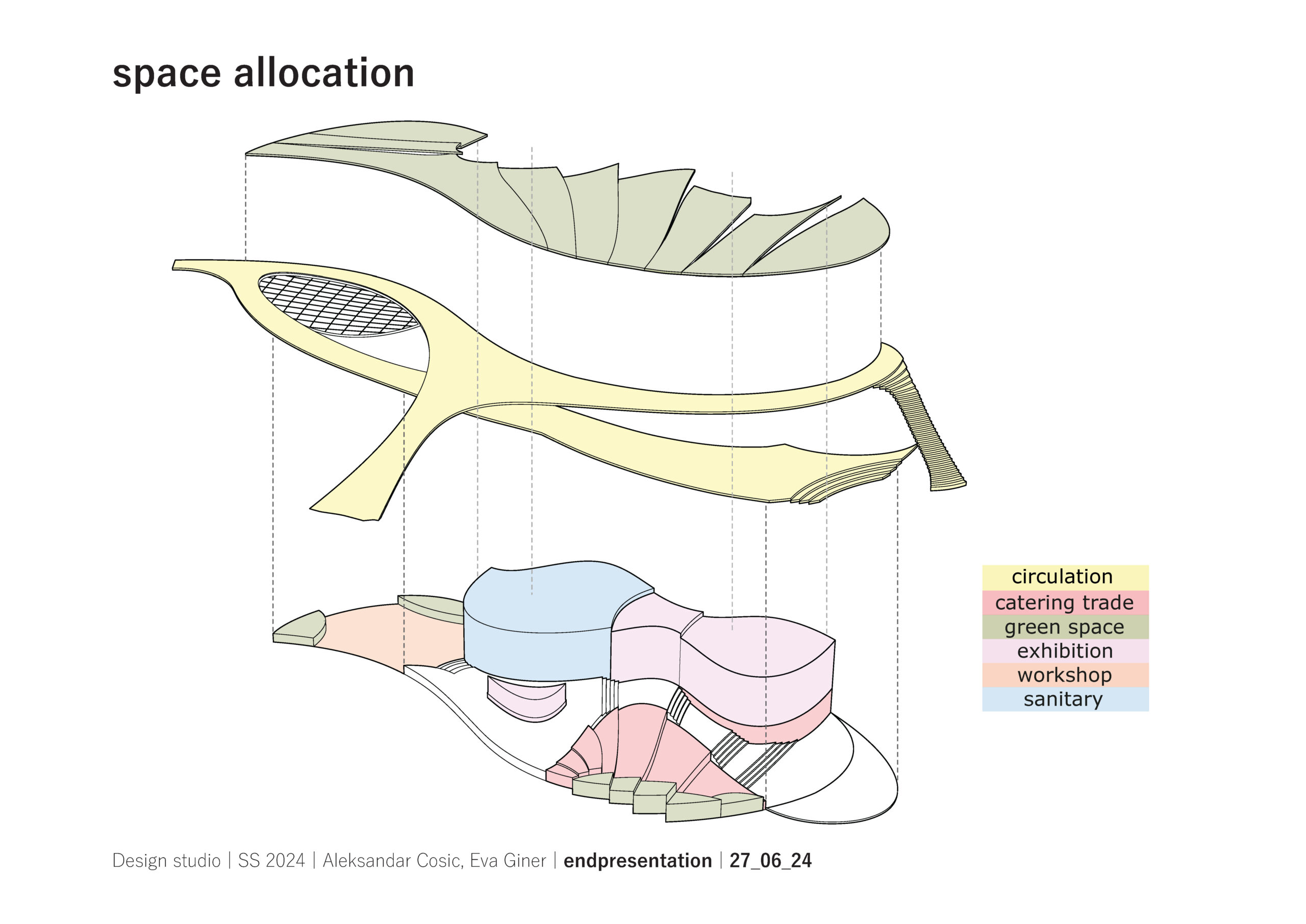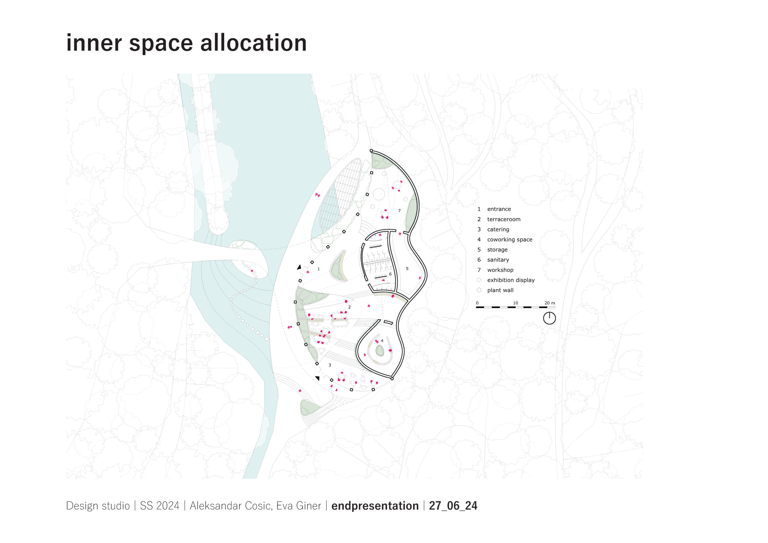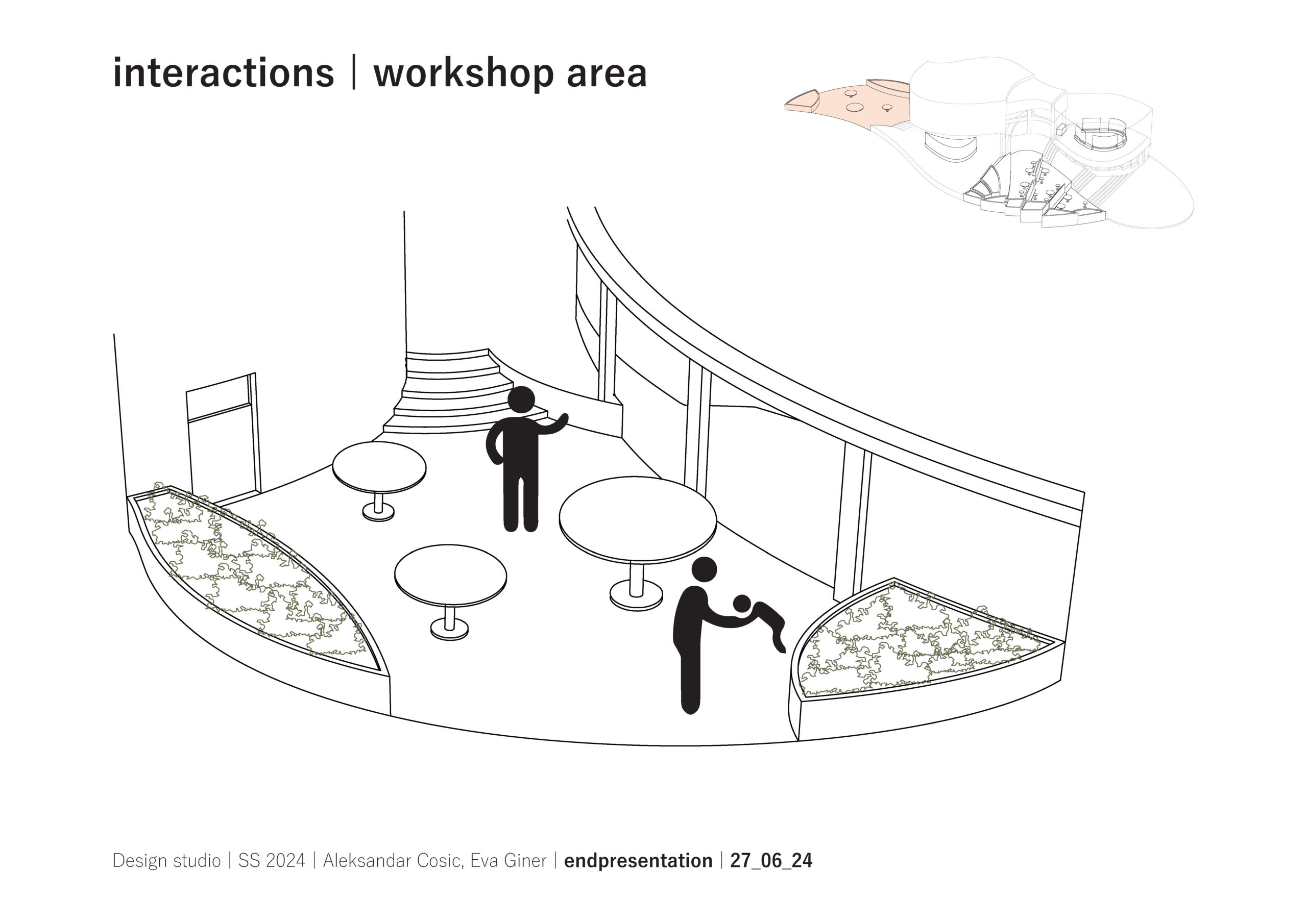 For this to realize, we decided on including exhibition spaces to raise awareness towards the surrounding animals and a workshop space for people to come together to learn about the needs of plants.