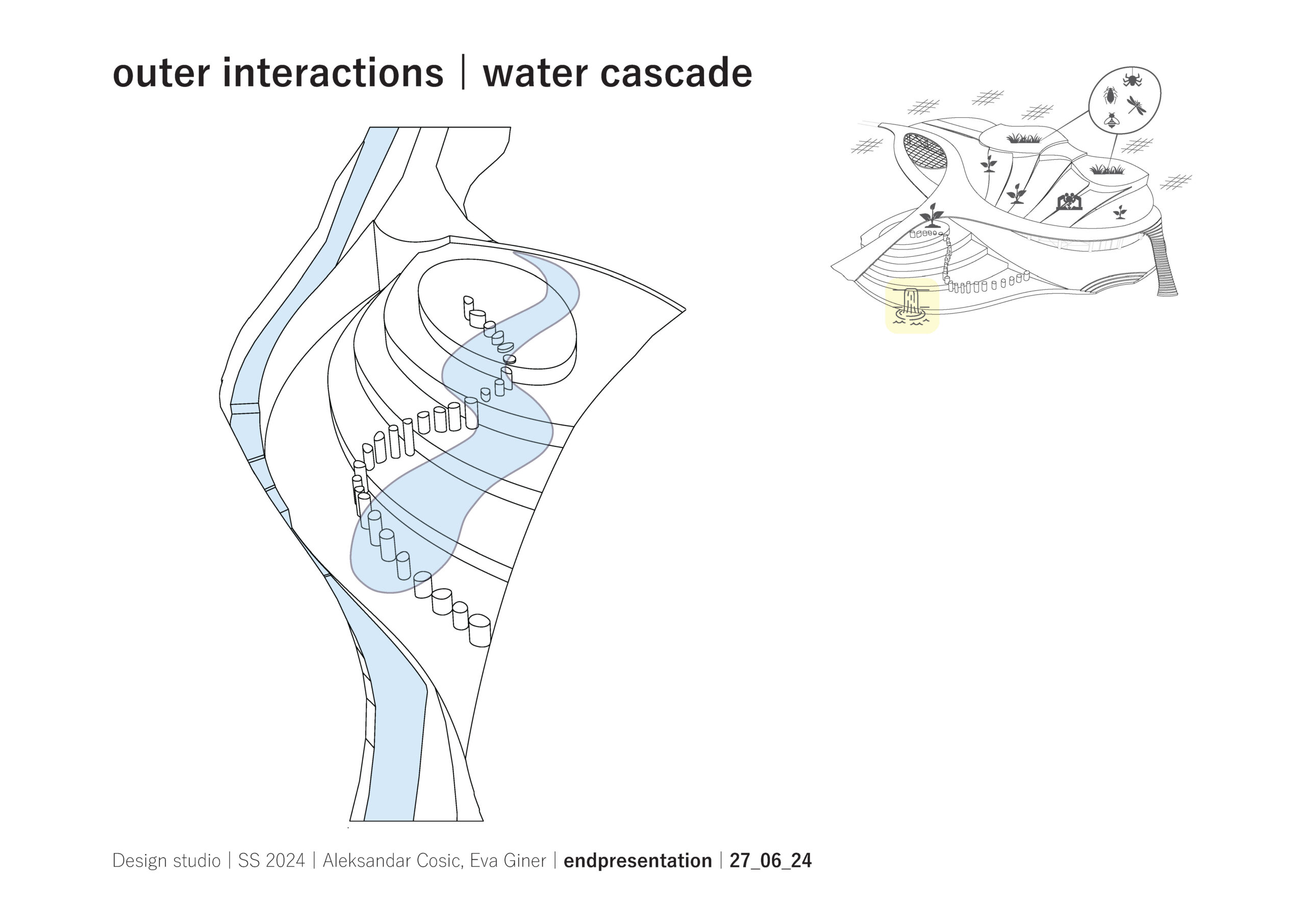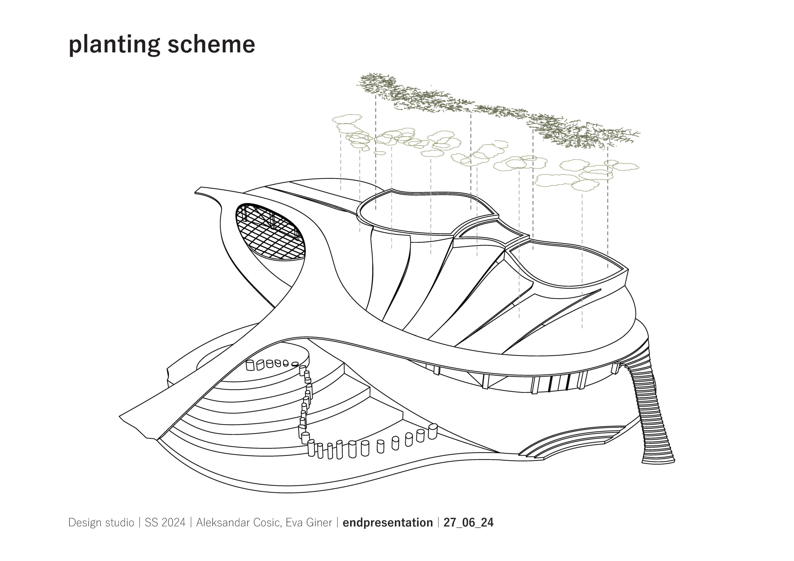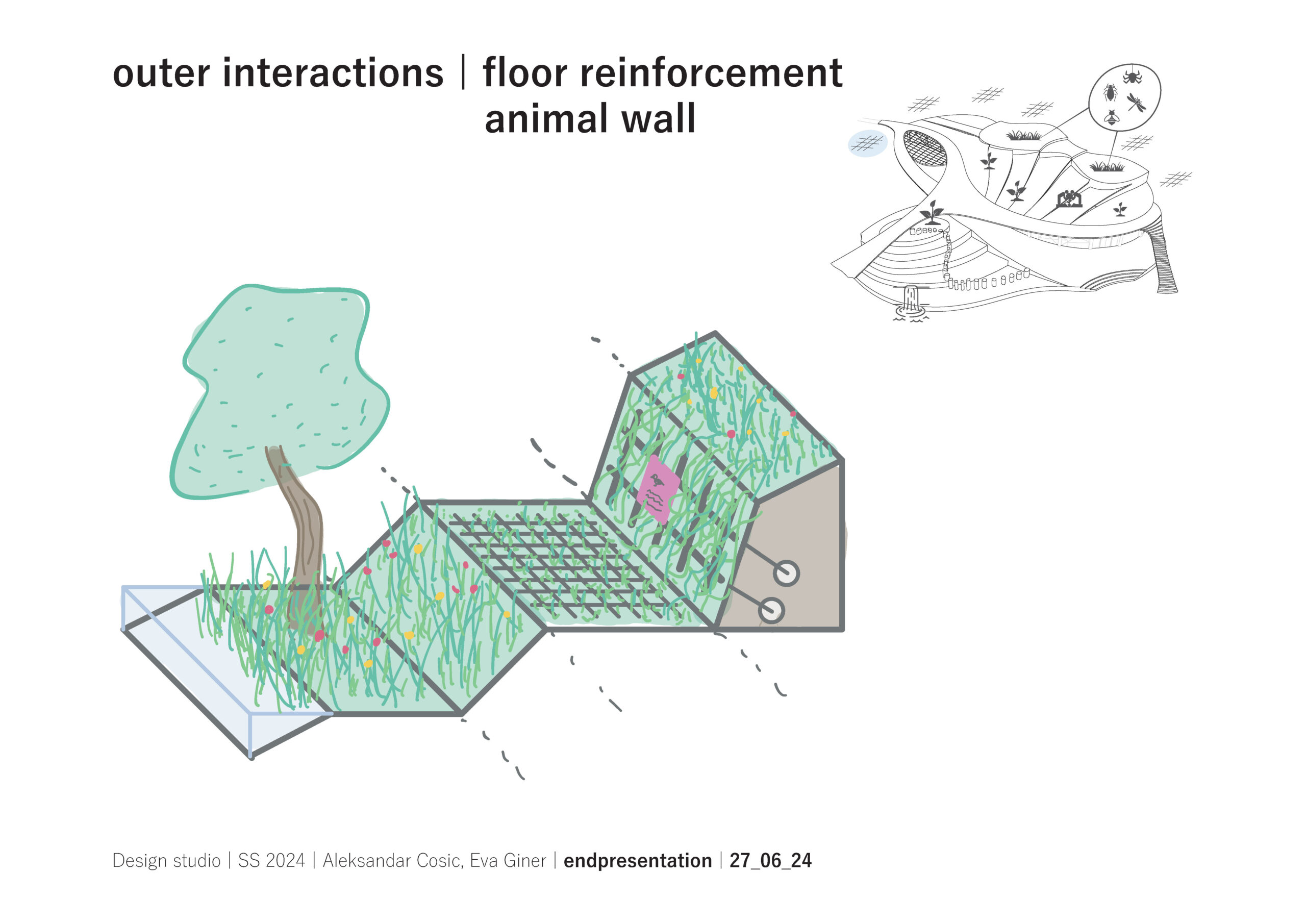 How can architecture play a role in stabilizing ecosystems? Buildings almost always disrupt the the existing site and therefore can only be justified, when they actually contribute positively to its environment. With this project, we tried to find out how a built system might integrate into a natural one to find harmony.