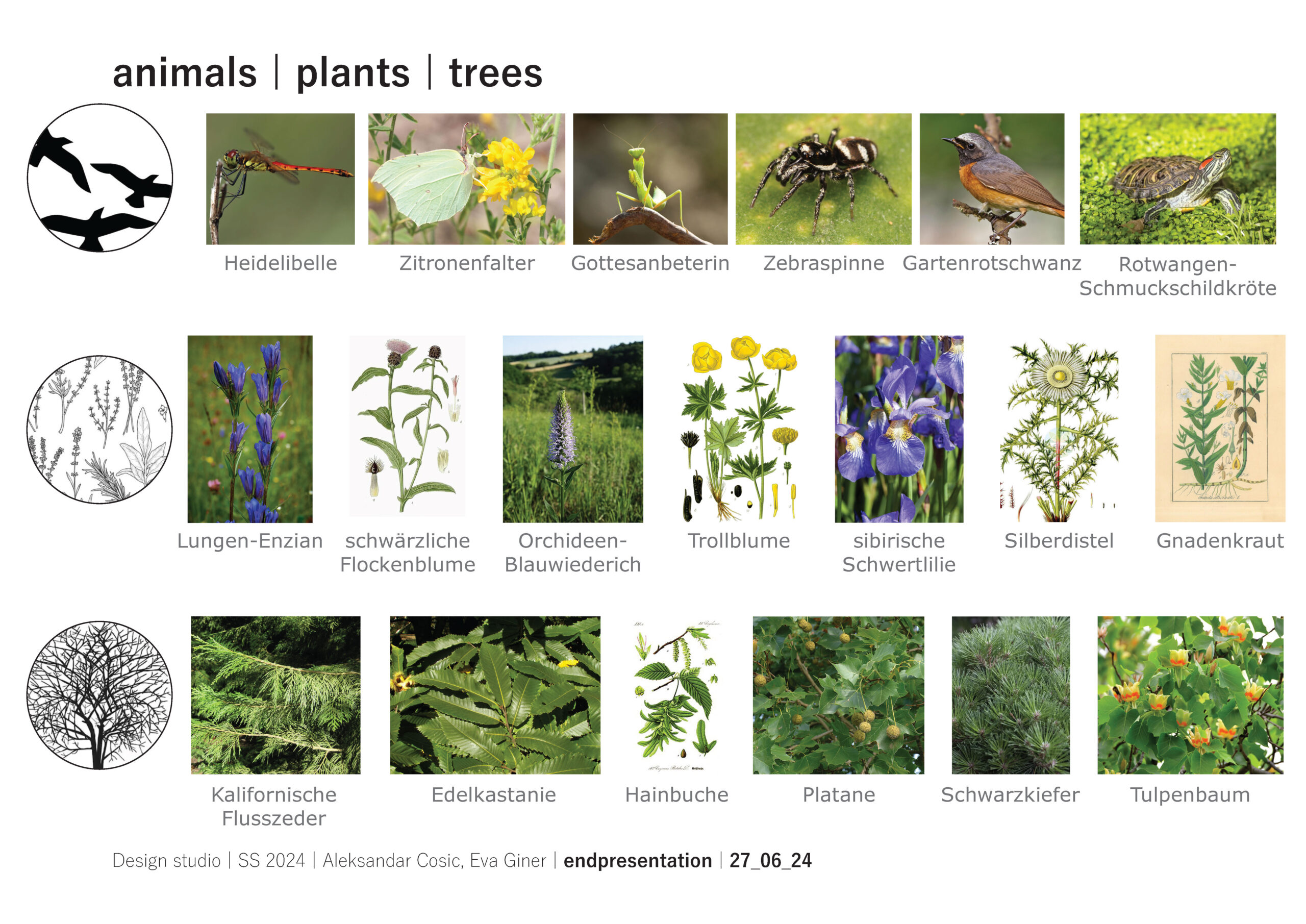 In order to protect the local ecosystem, we decided to only be using native plants in order to avoid introducing invasive species. When thinking about specific planting, we generally tried to avoid to enforce certain species to specific areas but to provide soil for the plants to thrive.